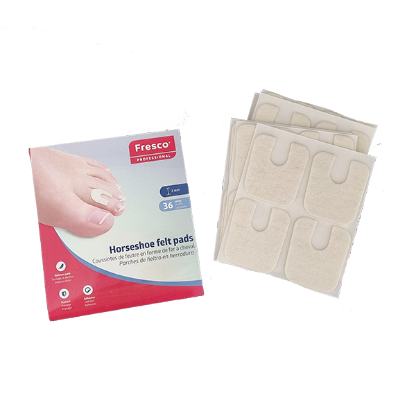 Self-adhesive wool felt pads precut in a horseshoe. 2mm thick. Pkt 36